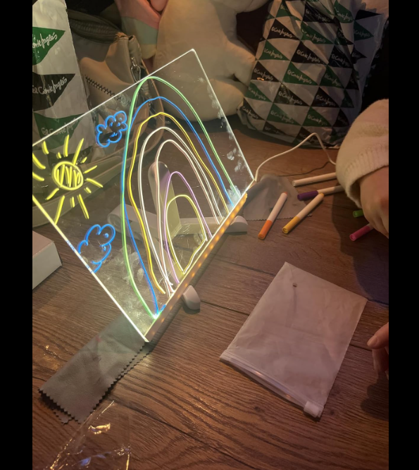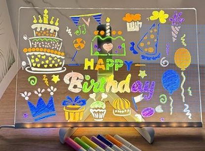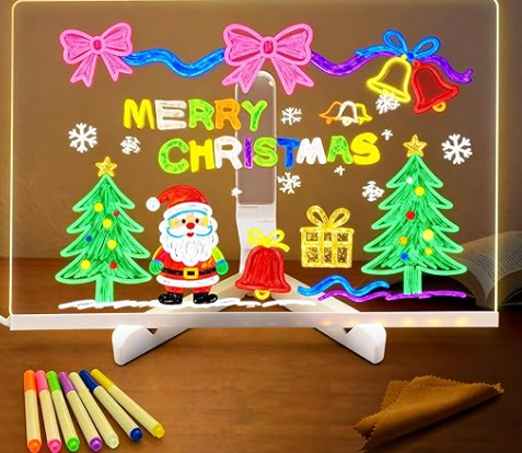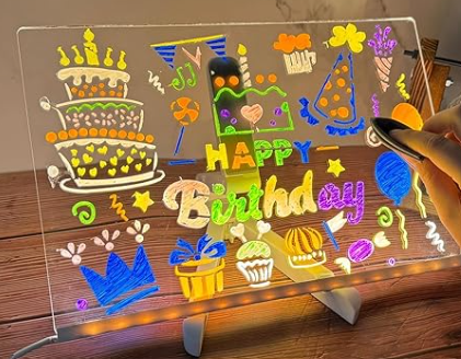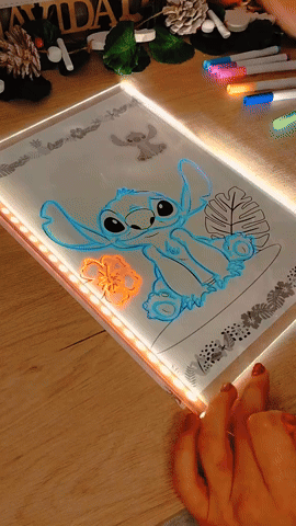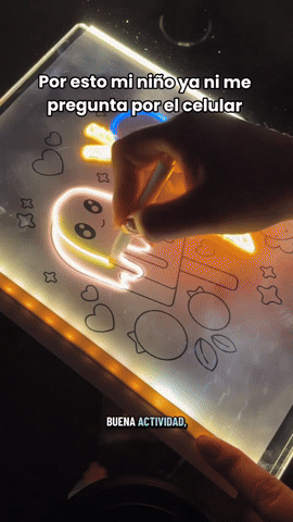 Con esta pizarra luminosa de estilo neón, cada trazo se transforma en un brillo de color. Tus dibujos cobran luz propia y se convierten en diseños vibrantes. Creatividad sin límites en cada pincelada.