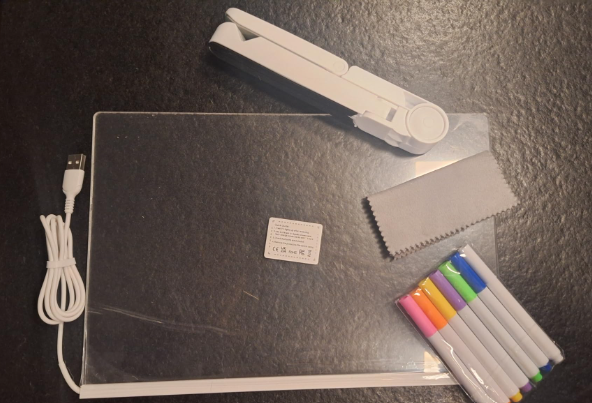 A mis niños les encanta pintar, y les ha flipado este tablero, la verdad es que apagas la luz y es chulísimo, he comprado uno para compartir pero me parece que tendré que comprar otro porque los dos quieren pintar todo el rato.
